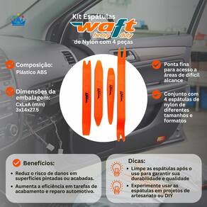 A Espátula de Nylon Waft é uma ferramenta essencial para profissionais e entusiastas do setor automotivo que buscam precisão e eficiência em suas atividades. Este kit contém quatro espátulas de nylon de alta qualidade, projetadas para atender a diversas necessidades na aplicação e remoção de produtos, como adesivos, selantes e tintas. O nylon utilizado na fabricação das espátulas é resistente e flexível, permitindo que você trabalhe com segurança e eficácia, sem danificar superfícies delicadas.