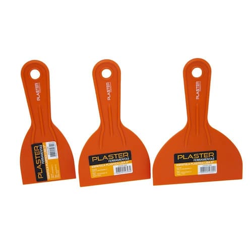 Especificações Técnicas Marca: Plaster Ferramentas Cabo do material: Plastico Local indicado: Parede e Chão Uso indicado: Interno e Externo Quantidade: 03 Unidades Medidas: -7,5 - 10,0 - 12,5