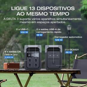 -Compatível com expansão de bateria: até 5 kWh (com DELTA 3 Plus, DELTA Pro 3, DELTA 2 Max e DELTA 2)