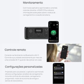 Gerador portátil equipado com bateria LiFePO4 de 245Wh e potência de saída de 300W (com pico de 600W via tecnologia X-Boost). Possui peso leve, design compacto e diversas opções de recarga.
