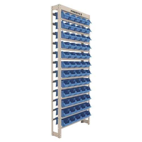 KIT ESTANTE+GAVETEIRO N 3 - 60 PEÇAS AZUL - PRESTO Gaveteiro cor Azul Kit com estantes em aço para encaixar gavetas plásticas, possibilitando organizar diversos itens. Estrutura em aço e 60 Gavetas Empilháveis n 3 inclusas É ideal para organizar parafusos e outras peças pequenas, pois facilita o acesso rápido a itens necessários para realizar o trabalho de maneira mais ágil e organizada Embalagem única e compacta: menos espaço no estoque e menor custo de . Gavetas práticas: ocupam 70% menos espaço que as convencionais. Gavetas plásticas podem ser removidas da estrutura. Maior resistência e durabilidade: estrutura em aço com tratamento químico antiferruginoso fosfatizante e pintura eletrostática a pó. Coluna de aço 0,9mm Carga Máxima: 150Kg distribuídos Medidas: Altura 150cm Largura 60cm Profundidade 18cm