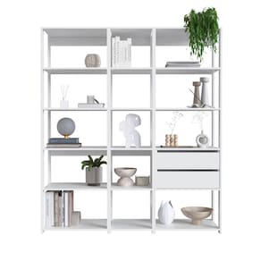 É a escolha ideal para quem busca uma solução prática e moderna para organizar e decorar seus ambientes. Produzida em MDP de 15mm com um acabamento fosco, ela combina com a durabilidade e com um visual sofisticado, sendo uma excelente opção para quem valoriza um design moderno e funcional. Seu design prático conta com 02 gavetas espaçosas para armazenamento de itens menores e nichos decorativos. Suporta até 7 kg por prateleira, proporcionando um espaço seguro e organizado para livros, objetos decorativos, plantas, documentos, entre outros. Seu design versátil permite que ela seja utilizada em diversos cômodos, como sala de estar, quarto, escritório ou área de estudo, adaptando-se perfeitamente a espaços pequenos e valorizando o ambiente com estilo. Este móvel chegará em sua casa separado em 03 Volumes.