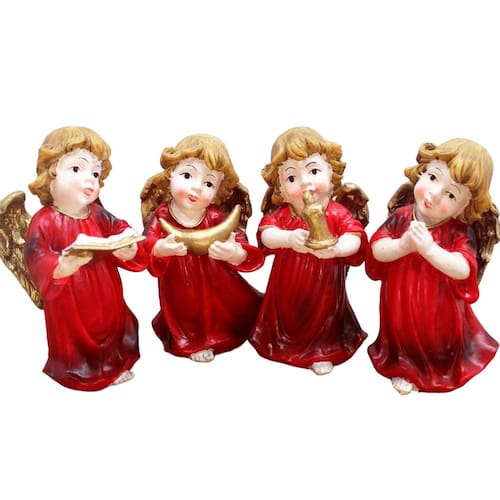 Kit Estatuetas Anjinho Anjo Vermelho Natal Em Resina De 13cm -