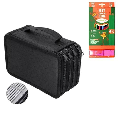 Benefícios Organização Prática: Estojo com 4 compartimentos amplos que armazenam até 200 lápis ou canetas. Versatilidade: Inclui lápis de cor vibrantes e lápis grafite para diversas atividades. Alta Durabilidade: Estojo em tecido Oxford resistente e lápis com mina reforçada. Conforto no Uso: Design ergonômico dos lápis e alça de do estojo. Praticidade Completa: Acessórios como apontador e borracha garantem eficiência no dia a dia.Características do EstojoMaterial: Tecido Oxford de alta qualidade com costura reforçada.Compartimentos: 4 divisórias independentes para melhor organização.Capacidade: Armazena até 200 lápis ou ões: 20 cm x 12,5 cm x 9 Moderno: Disponível em cores neutras e estilosas.Características do Kit Lápis de CorLápis de Cor: 12 unidades com formato sextavado e mina de 2,2 mm macia e ápis Grafite: 4 unidades HB para órios:1 apontador com depó borracha com cinta para maior precisãção de Cores: Apontador e borracha com .Especificações TécnicasEstojo Organizador:Material: Tecido Oxford.Compartimentos: 4 divisórias com zíper.Capacidade: Até 200 lápis ou Lápis de Cor:Lápis de cor: 12 cores ápis grafite: 4 dos lápis: 2,2 údo da Embalagem1 Estojo Organizador com 4 lápis de cor lápis grafite apontador com depó borracha com cinta.