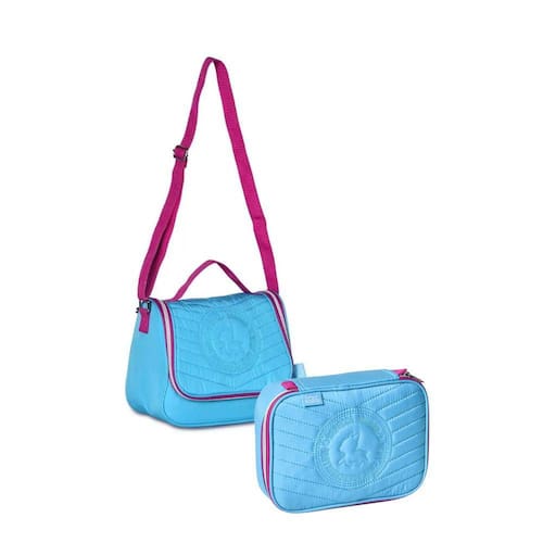 A lancheira oficial da Luluca é confeccionada material soft com matelassê, material interno térmico e possui puxadores personalizados com alça regulável.