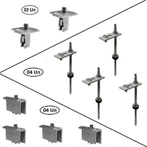 Kit estrutura suporte fixador para 02 placas solar alumínio e inox telha fibro ondulada em viga madeira perfil master Kit estrutura completa para 02 placas painéis solares fabricado em alumínio e componentes em aço inox Telha fibrocimento ou ondulada - fixação em viga de madeira