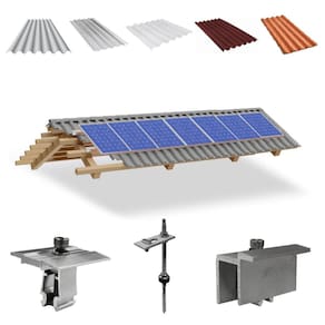 Composição do kit: Suporte fabricado em alumínio e aço inox para fixação em vigas de madeira Este suporte de fixação permite ótimo custo x benefício, pois é fixado na estrutura do telhado, dispensando estrutura extra para fixação. Fabricado em aço inoxidável e alumínio de alta resistência e durabilidade para todos os padrões climáticos, este suporte foi desenvolvido especialmente para fixar a estrutura em alumínio de sustentação dos painéis solares em vários tipos de telhados, sem a necessidade de alteração na estrutura. Utilizando materiais não ferrozos é ideal para todo tipo de região, sendo resistente inclusive, à maresia do litoral. Possui 2 regulagens de altura devido a sua rosca dupla, se adaptando a todo tipo de telhas e permitindo perfeito nivelamento das placas.