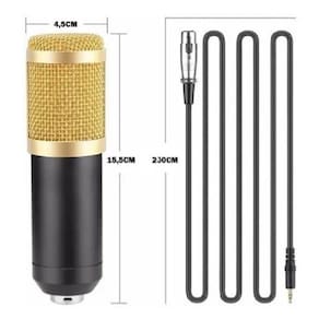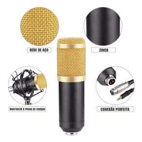 Itens inclusos: Microfone condensador Cabo XLR P2 Espuma Pop Filter Clipe de fixação Shock Mount aranha em plástico ABS e metal Braço articulado