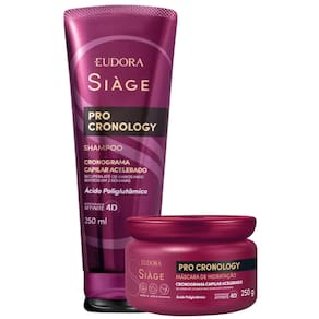 Benefícios do Kit: A Linha Siàge Pro Cronology traz o cronograma capilar acelerado capaz de recuperar todos os tipos de danos em 2 semanas, pausando a degradação e o desgaste do fio e recuperando os danos mais severos em todos os tipos de cabelo. Este Kit Siàge Pro Cronology traz diferentes itens para cuidar os seus fios