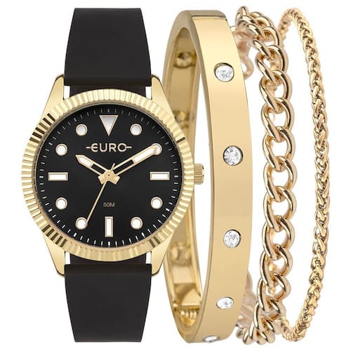 Pulseiras do kit: Metálicas douradas (com cristais, elo e lisa)