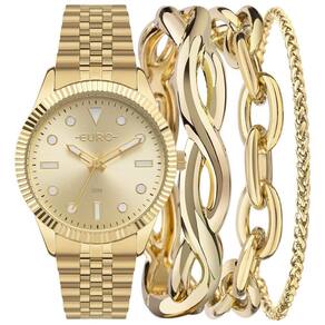 Kit Euro Feminino Soul Dourado - Eu2035yxn/k4d Realce a sua presença e individualidade com a Glitz! A nova coleção conta com o modelo que segue a tendência Diver com aro corrugado e mostrador diferenciado na cor dourada. Ideal para expressar sua singularidade. Cor da Caixa - Dourado Material da Caixa - Aço Formato da Caixa - Redondo Material da Pulseira - Aço Tipo de Fecho - Trava Lateral Garantia - 12 meses Cor do Mostrador - Dourado Cor da Pulseira - Dourado Largura da Caixa (cm) - 4,0 Resistente a Água - 5 ATM Descrição da Resistência - A resistência deste produto permite apenas respingos de água ao lavar as mãos. Não utilizar este produto em qualquer situação que haja contato direto com água. Cor - Dourado Tamanho - Médio Gênero - Feminino
