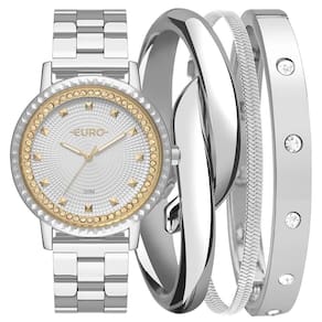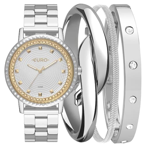 Kit Euro Feminino Soul Prata - Eu2036yvk/k4k Modelos que já brilham na versão solo, chegam na coleção Soul com kits de pulseiras que fazem a diferença. Relógio com pulseira em 3 links, banho prata, com detalhes de pedras e textura no mostrador e aro! Cor da Caixa - Prata Material da Caixa - Aço Formato da Caixa - Redondo Material da Pulseira - Aço Tipo de Fecho - Trava Lateral Formato da Caixa - Redondo Garantia - 12 meses Cor do Mostrador - Prata Cor da Pulseira - Prata Largura da Caixa (cm) - 4,2 Resistente a Água - 5 ATM Descrição da Resistência - A resistência deste produto permite apenas respingos de água ao lavar as mãos. Não utilizar este produto em qualquer situação que haja contato direto com água. Modelo_ML - Kit Relógio Euro Feminino Soul Prata - EU2036YVK/K4K plaintext_description_meli - Kit Relógio Euro Feminino Soul Prata - EU2036YVK/K4KModelos que já brilham na versão solo, chegam na coleção Soul com kits de pulseiras que fazem a diferença. Relógio com pulseira em 3 links, banho prata, com detalhes de pedras e textura no mostrador e aro! meli_title - Kit Relógio Euro Feminino Soul Prata - EU2036YVK/K4K