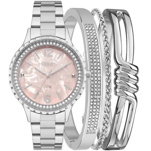 Kit Euro Feminino Soul Prata - Eu2036yvn/k4j A Soul é a coleção de kit da Euro, com relógios sofisticados e que acompanham um trio de pulseiras para combinar! Modelo com aro de pedras diferenciado no banho prata. Cor da Caixa - Prata Formato da Caixa - Redondo Material da Pulseira - Aço Tipo de Fecho - Trava Lateral Formato da Caixa - Redondo Garantia - 12 meses Cor do Mostrador - Rose Cor da Pulseira - Prata Genero - XML - Feminino Tamanho - XML - M Largura da Caixa (cm) - 4,0 Resistente a Água - 5 ATM Descrição da Resistência - A resistência deste produto permite apenas respingos de água ao lavar as mãos. Não utilizar este produto em qualquer situação que haja contato direto com água. Modelo_ML - Kit Relógio Euro Feminino Soul Prata - EU2036YVN/K4J plaintext_description_meli - Kit Relógio Euro Feminino Soul Prata - EU2036YVN/K4JA Soul é a coleção de kit da Euro, com relógios sofisticados e que acompanham um trio de pulseiras para combinar! Modelo com aro de pedras diferenciado no banho prata. Modelo_ML - Kit Relógio Euro Feminino Soul Prata - EU2036YVN/K4J Cor - Prata Tamanho - Médio Gênero - Feminino