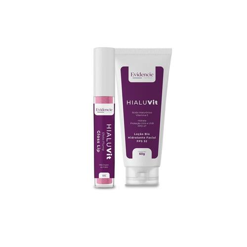 Kit evidencie super hidratante ácido hialurônico + efeito plump Kit evidencie hialuvit: um conjunto de cuidados para a pele para controle dos sinais de envelhecimento e uma super hidratação profunda que inclui uma loção bio hidratante facial fps 52 com ácido hialurônico e vitamina e e um gloss lip com efeito plump e ácido hialurônico.