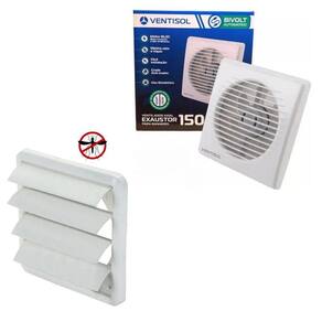 Kit Exaustor Banheiro 15Cm com Veneziana Grade Anti Inseto Kit Exaustor Banheiro 15Cm com Veneziana Grade Anti Inseto Deixe seu banheiro ou espaço residencial com um ar renovado e limpo O Kit Perfeito Para Banheiro É ótimo para tirar o mal odor e manter o ambiente com menos poeira, ácaro e bactérias. Pode ser utilizado também para retirar vapores do banheiro reduzindo a chance de embaçar os vidros ou até mesmo o mofo que gera no teto por não ter circulação do vapor. Benefícios:-instalação muito simples e prática-pode ser ligado junto ao interruptor da lâmpada para ser acionado automaticamente-baixo consumo de energia-grade anti-inseto-duas opções de instalação pelo topo ou pela traseira -compatível com diversos dutos, orientados e exaustores de 150mm Ficha Técnica do Exaustor de Banheiro:-modelo: ebvx2-15-potência: 22W-diâmetro do tubo duto para instalação 150mm 15 cm -recomendado para ambientes de até 10m modelo 10 e 15 cm-não acompanha chave de controle- Ideal para banheiros:-tira odores do banheiro e vapor do chuveiro.-econômico:-tela protetora:-equipado com tela protetora em aço inox que impede a entrada de insetos.-tubo de 150mm: -adaptável à tubo de PVC de 150mm.-recomendado para ambientes de até 10m: -velocidade: 1350 rpm-vazão:75 m/h Especificações-peso: 0.745 kg-dimensões: 20.0 9.0 21.0 cm-ambiente: Banheiro, Loja-climatização: Exaustão, Ventilação Itens inclusos:-veneziana Aletas Autofechante Para Exaustor Ventisol 100mm-exaustor Bivolt 15cm