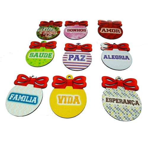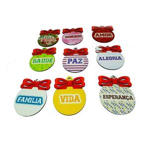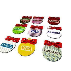 Kit Exclusivo bolinhas de Natal em MDF com laço lindas palavras Kit Exclusivo bolinhas de Natal em MDF com laço lindas palavras