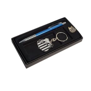 Uma ótima opção para presentear ou para todo torcedor apaixonado, o kit conta com três peças armazenadas em uma caixinha personalizada. O kit contém uma caneta, um chaveiro e um boton. A caneta é confeccionada em metal e plástico e traz design com detalhes em prata, além do nome e escudo da equipe, que marcam presença em branco. Já o boton é produzido em metal e traz o formato e as cores do escudo do clube, apresentando dimensões de 2x2cm e fecho. Por fim, o chaveiro é fabricado em metal, conta com o escudo da equipe e argola para encaixar a chave. INFORMAÇÕES DO PRODUTO:Conteúdo - 1 pin, 1 chaveiro e 1 caneta Composição: MetalPeso do Produto (gramas): 100 gramasDimensões aproximadas com embalagem (AxLxC): 2 x 8 x 16 cm.