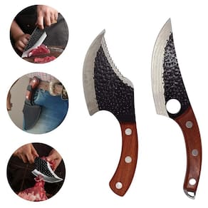 Kit faca e cutelo aço damasco cabo madeira cozinha churrasco