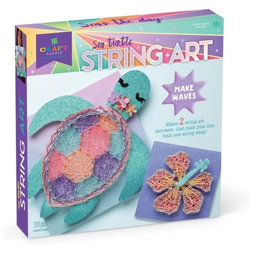 DIVERSÃO MARAVILHOSA Vá para a praia com este alegre kit de arte em cordas com uma tartaruga marinha brilhante e uma flor de hibisco. INSTRUÇÕES FÁCEIS DE SEGUIR Basta seguir as instruções passo a passo, empurrar os pinos nas bases de espuma pré modeladas e amarrar. SEM FERRAMENTAS ESPECIAIS Tudo o que é necessário para criar uma tartaruga marinha e flor de hibisco está incluído não há necessidade de comprar suprimentos ou ferramentas especiais. Não são necessários martelos ou pregos PRESENTE PERFEITO Este kit incentiva a criatividade e é um ótimo presente para os amantes da praia e do oceano KIT TUDO EM UM O Craft tastic Sea Turtle String Art Kit é embalado com cordas coloridas, telas de espuma, papel brilhante, adesivos de espuma brilhante, alfinetes e muito mais para completar esses 2 artesanatos divertidos Marca: Não Informado