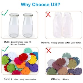 ARTESANAL DE FLOR PARA 2 Toneladas de flores de feltro, botões e cordas coloridas, 2 garrafas de vidro não como outras garrafas de plástico e 3 folhas de adesivos de gemas 3D, etc., este kit de artesanato de flores vem com tudo que você precisa EMBALAGEM PRONTA PARA PRESENTE Não se preocupe com a embalagem A linda caixa azul está pronta para embrulhar e dar. Um presente para o Natal, feriados ou aniversário. FÁCIL DE JOGAR E DOCE Inclui instruções detalhadas passo a passo, adequadas para crianças de 5 a 12 anos. também os buquês acabados podem ser servidos como presentes doces para pais, professores, etc. LIVITE SUA CASA permite que suas meninas abracem seu lado criativo, fazendo uma criação única. Também é uma bela decoração animada para sua casa. SÓ PARA VOCÊ A qualidade é nossa prioridade, se não estiver completamente satisfeito. Aproveite suas compras agora Marca: Não Informado