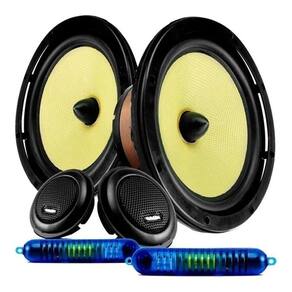 kit 2 vias kevlar® Top de linha. Materiais de última geração. Carcaça injetada em termoplástico Borda de Borracha Nitrílica Bobina móvel em Kapton® Cone de Kevlar® Divisor de frequências “Low Pass” acoplado ao sistema magnético Tweeter ímã de neodymium, diafragma de 1” silk