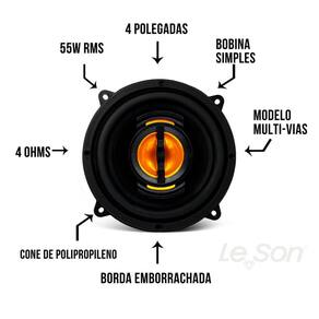 O Kit Com 2 Alto-falantes 4" Leson JB Flex oferece um som potente de 55W RMS em cada unidade, garantindo qualidade e desempenho excepcionais a um preço acessível. Com materiais de alta qualidade e um design moderno, esses alto-falantes são ideais para instalação nas portas do veículo, proporcionando não apenas um áudio de alta fidelidade, mas também um toque de modernidade ao interior do carro. Sua instalação é fácil, e eles são projetados para melhorar a qualidade sonora do veículo, reproduzindo com precisão todos os detalhes musicais, graças à sua resposta de frequência equilibrada e ampla.