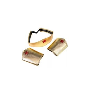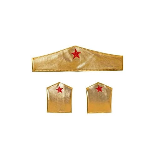 Kit Tiara Braceletes Dourado Mulher Maravilha Carnaval Festa