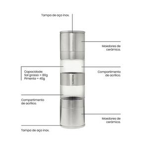 - O moedor duplo de sal e pimenta, possui design clean e arrojado, levando beleza e praticidade para seu dia a dia!