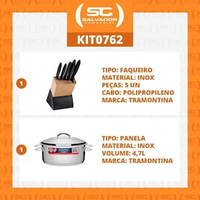 1 - Jogo de 6 PÇ (4 facas, 1 garfo e Suporte de Madeira Plenus) - Tramontina 23498028