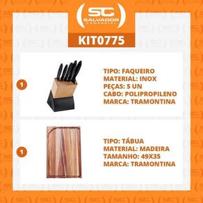 1 - Jogo de 6 PÇ (4 facas, 1 garfo e Suporte de Madeira Plenus) - Tramontina 23498028