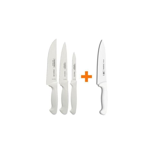 Jogo de Facas Premium com Lâminas em Aço Inox e Cabos de Polipropileno Branco 3 Peças - Tramontina 24499811