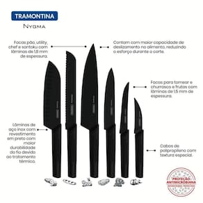 1 - Jogo de Facas Nygma com Lâminas em Aço Inox Texturizados Preto 6 Peças - Tramontina