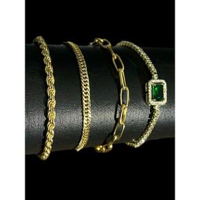 Kit Feminino Pulseiras 3mm + Pedra Verde Banhado a Ouro Detalhes do Produto: Material: ligas metálicas de alta qualidade, especialmente tratadas para fixação e absorção do ouro, com acabamento em verniz protetor. Aparência: visual idêntico ao ouro maciço. Produção: artesanal, com atenção meticulosa aos detalhes. Banho: 10 camadas espessas de ouro 18k, finalizadas com verniz antialérgico . Elos: soldados varia conforme o modelo . Pedras: zircônias brilhantes cravejadas quando aplicável . Tamanhos Disponíveis: Cordões Masculinos: 70cm padrão e 60cm sob consulta/Pedido Via Chat . Cordões Femininos: 50cm padrão e 45cm sob consulta/Pedido Via Chat . Pulseiras: 21cm padrão ; tamanhos de 18cm a 23cm sob consulta/Pedido Via Chat. Pingentes: conforme imagens; consulte para mais detalhes via chat. Espessuras Recomendadas para Cordões / Pingentes: P: 1mm a 4mm M: 4mm a 8mm G: 6mm a 13mm Gg: 12mm a 18mm Incluso na Compra: Saquinho de organza para armazenamento seguro. Caixa elegante, perfeita para presente. Cupom de desconto para a próxima compra. Flyer com outros produtos da coleção. Carta de agradecimento personalizada. Adesivo da marca ToJoia18k. Informações Adicionais: : 6 meses termos acompanham o produto . Devolução: 7 dias para devolução sem questionamentos. Envio: despacho em até 24 horas úteis após confirmação do pagamento. Cuidados com a Peça: Evite contato com produtos químicos; aguarde o perfume secar antes de usar. Evite contato com shampoo, condicionadores e suor excessivo. Armazene em local seco, preferencialmente no saquinho de organza fornecido. Uso no mar e piscina é permitido; lave com água corrente e sabão neutro após. Por que Escolher a ToJoia18k Semi-joias luxuosas que combinam estilo, qualidade e sofisticação. Banho espesso de ouro 18k, garantindo brilho duradouro e acabamento impecável. Design exclusivo e produção artesanal, perfeitos para qualquer ocasião. Materiais premium que asseguram durabilidade. Ao escolher uma semi-joia ToJoia18k, você investe em qualidade, elegância e uma experiência única. Aguardamos sua compra Observação: pode ocorrer variação no fecho raramente . Imagens reais, sem edição. Qualquer dúvida, estamos à disposição para esclarecimentos. Marca: Não Informado Ean: 7891998468872