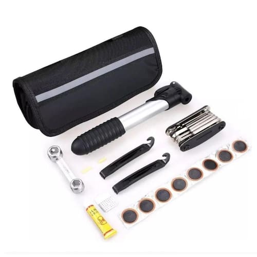 Kit Ferramenta para Bicicleta Reparo com Bolsa O Kit Ferramentas para Bike Reparo com Bolsa, auxilia você em pequenos consertos e reparos em sua bicicleta ou bike e assim passear com sua família e amigos sem problemas e sem preocupações. Itens inclusos: 1- Bolsa 1- Kit Chaves 1- Chave de boca dupla 1- Mini Bomba de ar 1- Estojo com kit reparo 2- Espátulas Marca: Force Speed