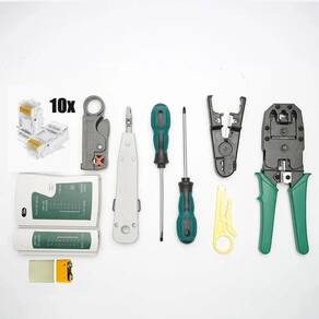 O kit de ferramentas 10-em-1 inclui um alicate de crimpagem, testador de cabo de rede, faca de descascamento de fios, chave de fenda plana/cruz, faca de alicate de decapagem, e conectores rj45. Alicate de crimpagem de rede multifunções: ferramenta de crimpagem 8p+6p+4, rj45/12/11. É um material especial, antiderrapante, confortável de usar. Dimensões do segmento de linha de pressão e conectores de cabo de rede correspondem, não propensas à deslocação, a conexão mais de perto. Verificador do cabo da multifunção: para encontrar o cabo diferente da rede, necessidades dos testes da linha telefônica; desempenho estável, com vida útil longa; projeto rachado, uso flexível. Design perfeito: conceito ergonômico profissional, confortável de usar, fácil de operar. Kit portátil: o kit é seguro em uma bolsa de ferramentas conveniente, que pode impedir que o produto de danos e perder.