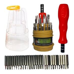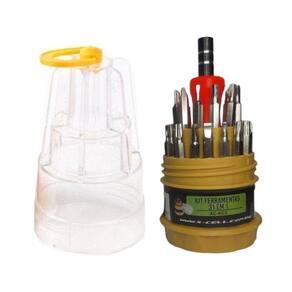 Este Kit de Chaves 31 em 1 com estojo possui vários modelos de ponta de chaves. São 31 peças ideal para manutenção de relógios, celulares e eletrônicos em geral.Ferramentas: Cabo para ponta de chave; Pontas de chaves; Chave do tipo Torx; Chave Phillips; Chave Fenda; Chaves Allen.Características:- Marca: Flex- Modelo: XC-KC2Especificações:- Kit Ferramenta 31 em 1;- Blister com 1 unidade;- Com 30 pontas imantadas;- Ótima qualidade e precisão;- Cabo giratório;- Aderente;- Antiderrapante;- Encaixe magnético;Conteúdo da embalagem:- Kit Ferramentas 31 Chaves em 1 Granel XC-KC2 - Flex Ean: 7904390928537
