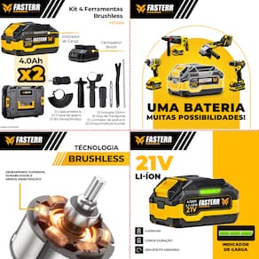 KIT FERRAMENTAS 4 EM 1 C/02 BATERIAS 21V FASTERR - FST001K