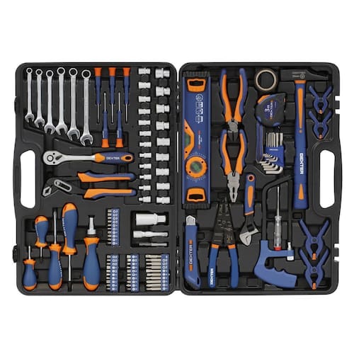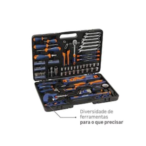 ProdutoKit de ferramentas Uso indicadoMultiuso MaterialMetal Tipo de materialAço cromo-vanádio MarcaDexter Uso indicado dos jogos e kitsMultiuso Quantidade de peças108 peça s Produto acompanha embalagemSim Tipo de embalagemMaleta Peso do produto na embalagem6,08 kg Conteúdo da embalagemO jogo 108 peças dexter acompanha 1 chave inglesa 6 150mm , 1 alicate bomba d'água 8 200mm , 1 alicate universal 6.1/2 160mm , 1 alicate descascador de fios e cabos 8.1/5 205mm , 1 chave phillips ph2x75mm, 1 chave de fenda sl5x75mm, 1 chave phillips ph1x38mm, 1 chave de fenda sl6x38mm, 1 punho catraca, 1 nível alumínio 300mm 2 bolhas com pontas emborrachadas, 1 martelo 25mm 300g com cabo de fibra, 1 arco de serra 6 150mm , 1 chave catraca cabo bimaterial, 1 fita isolante 5m, 1 estilete 18mm, 5 chaves de precisão ph0, ph1,sl1mm,sl1.6mm,sl2mm , 1 chave teste 100-250v, 1 trena 3m, 2 grampos multiuso 90mm, 2 grampos multiusos 64mm, 6 chaves combinadas 8, 9, 10, 11, 12 e 13mm , 1 adaptador de soquete 1/4 macho para 3/8 fêmea , 1 adaptador de soquete 3/8 75mm, 1 suporte para bit 60mm, 1 soquete longo 3/8 21mm, 11 soquetes 1/4 4, 4.5, 5, 5.5, 6, 7, 8, 9, 10, 11, 12mm , 9 soquetes 3/8 10, 11, 12, 13, 14, 15, 16, 17, 18mm , 1 jogo com 10 bits 25mm pz0, pz1, pz2, pz3, h3, h4, t20, t25, t30, t40 , 1 jogo com 10 bits 25mm ph0, ph1, ph2, ph3, h5, h6, sl3, sl4, sl5.5, sl6 , 1 jogo com 10 bits 25mm ph1, ph2, ph3, sl3, sl4, sl5.5, sl7, t20, t25, t30 , 1 jogo com 10 bits 50mm ph1, ph2, ph3, sl4, sl5, sl6, t10, t15, t20, ad e 1 jogo com 11 chaves allen 1.27, 1.5, 2, 2.5, 3, 3.5, 4, 4.5, 5, 5.5, 6mm . Dimensão da embalagem358x508x74 mm Acompanha maletaSim Material da maletaPlástico Observações sobre a do fabricanteGarantia apenas para defeito de fabricação, não cobre mau uso.