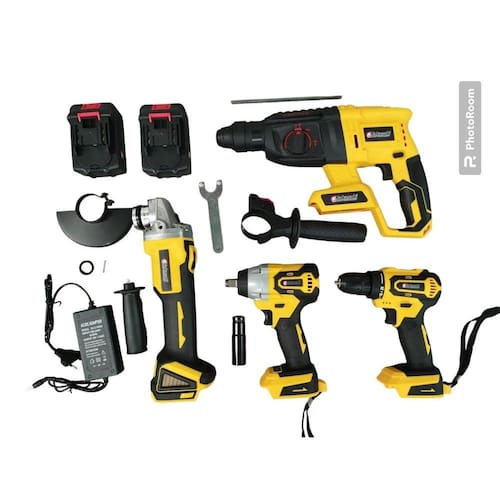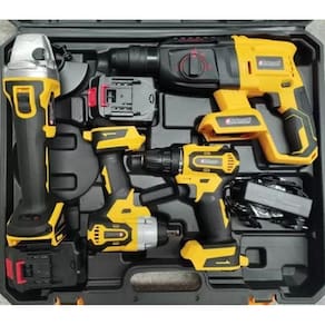 Itens inclusos: 1 - martelete dch 1 - parafusadeira de impacto 1 - parafusadeira 1 - esmerilhadeira a bateria 4.1/2 1 - bateria de 5ah 38v max 1 - bateria de 2ah 38v 1 - carregador bivolt 1 - maleta - chaves de troca - punhos emborrachados