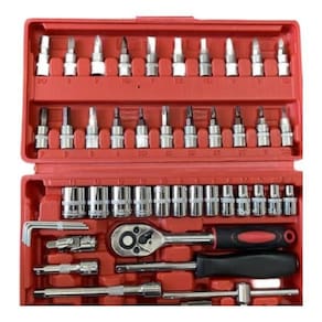 Kit Ferramentas Multiuso E Maleta - 46 Peças Completo e Versátil: Com 46 peças, incluindo soquetes, chaves de fenda, chaves inglesas e mais, você terá todas as ferramentas essenciais ao seu alcance.