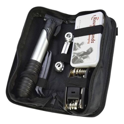 Itens inclusos: - 1 Bolsa - 1 Kit Chaves - 1 Chave de boca dupla - 1 Mini Bomba de ar - 1 Adaptador para Bico Fino - 2 Espatulas - 1 Estojo com kit reparo Ean: 7899913111582