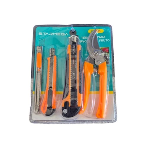 O kit de ferramentas para poda é a solução ideal para quem busca praticidade e eficiência na hora de cuidar de suas plantas frutíferas. Composto por 3 estiletes de diferentes modelos e uma tesoura de alta precisão, é perfeito para realizar cortes detalhados em galhos e ramos com facilidade e segurança.