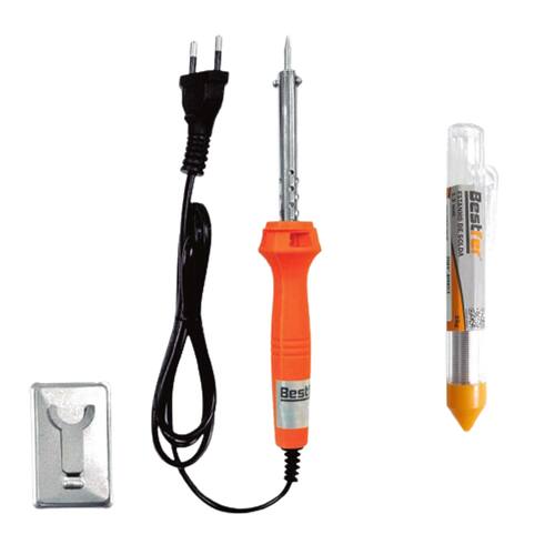 Kit Ferro Solda Eletrônica Suporte 30W Tubo Estanho 25G Ferramenta prática e versátil, produzida e testada conforme normas específicas; Fabricado em materiais resistentes e de alta durabilidade. Característica técnica - aquecimento rápido - resistência de mica - conjunto de resistência e tubo metálico substituível - tratamento de ferro e alumínio proporciona maior durabilidade a ponta - design ergonômico - potência: 30 w - voltagem: 220 v -frequência: 60 hz - temp máx: 420c - peso: 140 g Utilizado para: União de partes metálicas como fios condutores e placas de circuito, reparo em componentes eletrônicos em geral. Indicado para: Uso domestico, técnicos, eletricistas, artesanato e outras funções. Composição: Aço inoxidável, fio de estanho cromado, cobre, mica, pa66 Tubo de solda p eletrônica estanho 25gr 1,2mm bestfer Solda para eletrônica marca bestfer em tudo de 25g, indicada para montagem de circuitos eletrônicos, prototipagem, reparo de equipamentos eletrônicos, artesanato e preparação de placas de circuito impresso pcb's Solda de uso geral. Use sempre equipamentos de proteção individual epi Instruções para soldagem: - as peças a serem soldadas deve estar completamente limpas e juntas - a ponta do ferro de solda deve aquecer as peças até atingir a temperatura necessária para que a solda flua e preencha completamente os espaços garantindo a firmeza dos componentes soldados Informações gerais: - marca: bestfer - modelo: bfh0212 - cada unidade contém 25g - fio de 1,2mm de diâmetro - ideal para reparos eletrônicos em geral - específica para ferros de solda de 30 a 60 watts. - de 90 dias contra defeito de fabricação Conteúdo da embalagem: 1 ferro de solda 30w 220v bestfer bfh1683 1 haste metálica de apoio 1 tubo estanho 25g 1,2mm Ean: 7890997501634