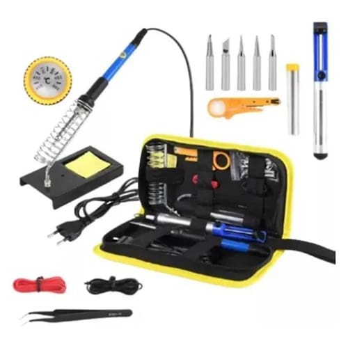 Características: - Ferramentas de solda profissionais são ideais para solda sem Cinza de semicondutores - Aquecedor cerâmico durável de alta qualidade. - Controle de temperatura ajustável ferro de solda: 200-450 C a Ferramenta de aplicação de solda eletrônica tem um botão para ajustar a temperatura - Muito adequado para hobbies, kits, rádio e trabalho eletrônico. - A ponta banhada a ferro e a estrutura de aço inoxidável fornecem uma estrutura de aço mais longa para proporcionar uma vida útil mais longa. Especificação: - Comprimento do ferro de solda: 18,5 cm - Comprimento do cabo: 87cm - Tensão de funcionamento: 110V Itens Inclusos: - 1 Ferro de Solda - 1 Sugador de Solda - 1 Suporte - 1 Estanho - 1 Alicate de Corte - 6 Pontas do Ferro para Soldagem - 1 Pinça - 1 Fio Positivo - 1 Fio Negativo - 1 Estojo Para Armazenar os Itens Marca: Não Informado