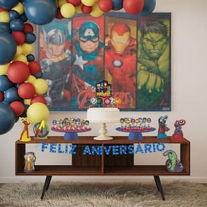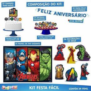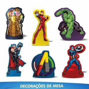 Conteúdo da Embalagem e Composição: 06 enfeites para mesa, 07 toppers para bolo, 24 apliques decorativos - Fabricados em EVA com impressão de alta definição; 01 faixa Feliz Aniversário - Fabricada em EVA Glitter, acompanha fita de cetim; 01 painel TNT - TNT 40grs. Estampado com tinta à base de água. Garantia contra defeito de fabricação. Prazo de Validade: Indeterminado. Produto oficial licenciado Marvel. Ean: 17899061520981