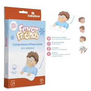 Super práticas para ter sempre na bolsa ou mala do bebê, prontas para usar e sem a necessidade de resfriamento, as compressas refrescantes Fever Friends auxiliam as mães na hora da febre, pois quando aplicadas na testa do bebê ou criança, elas agem fazendo com que a temperatura corporal diminua. A ação de Fever Friends permanece por até 8 horas. Fever Friends pode ser recortado e aplicado no local das vacinas, auxiliando na redução da dor e inchaço localizado.