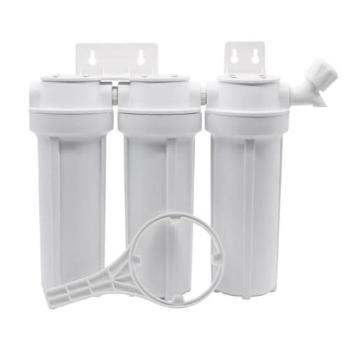 Kit Filtro Triplo BBI 9.3/4 Branco PT230BR/T para Fabricação de Cerveja Artesanal Estágios de Filtragem em Polipropilen Kit Filtro Triplo BBI 9.3/4 Branco PT230BR/T para Fabricação de Cerveja Artesanal Estágios de Filtragem em Polipropileno e Carbon Block + Chave + Torneira O kit Filtro Triplo BBI 9.3/4 Branco PT230BR/T para Fabricação de Cerveja Artesanal é um Filtro para Purificação de água, especialmente desenvolvido para preparação de Cervejas Artesanais, composto por um Filtro Triplo de carcaças Brancas modelo PT230/BR/T de 9.3/4 polegadas de altura, sendo que a entrada conta com um Refil de Polipropileno seguido por dois estágios de Carbon Block BBI, com classificação de filtragem de 5 micra. Essa combinação gera um processo de tripla filtragem em elementos filtrantes individuais, sendo que o Refil de Polipropileno BBI é responsável por reter as partículas sólidas e suspensas na água, como barro, cloro, ferrugem, etc. Além de iniciar o processo de decloração da água e inibindo a proliferação de bactérias e agentes químicos da água. Os outros dois estágios de filtragem realizados através dos elementos de Carbon Block completam o processo de filtração da água promovendo a adsorção do cloro, retendo as menores partículas, reduzindo cor e turbidez e também gostos e odores indesejáveis. Todo o processo garante um grau de filtragem de 5 micra, para se obter na ponta da torneira uma água pura e de alta qualidade. Ah, a Torneira e a Chave para abertura das carcaças já acompanham o Kit Filtro Triplo BBI 9.3/4 Branco PT230BR/T para Fabricação de Cerveja Artesanal com 1 Refil Polipropileno e 2 Carbon Block + Chave + Torneira para seu ponto de uso. Gostou Não perca tempo e compre agora seu Kit de purificação de água para produção de sua cerveja. Vantagens e Benefícios- Triplo processo de filtração;- Carcaças Brancas em Polipropileno;- Retenção de partículas sólidas e sedimentos;- Pré-filtração e filtração para Água Pura na Produção de Cerveja Artesanal;- Filtros e carcaças com altura 9.3/4;- Polipropileno e Carbon Block Combinados no mesmo processo;- Filtração profissional;- Classificação de filtragem de 5 micra.- Vazão de 300 litros hora;- Acompanha Chave de Carcaça e Torneira;- Por possuir 2 elementos Carbon Block, mantém a decloração em 100% por um período maior. Características TécnicasMarca: BBICódigo: PT230BR/TInstalação: POU - Ponto de UsoAltura: 9.3/4 Polegadas Externo: 2,5 PolegadasDimensões do produto comp x larg x alt : 126 x 359 x 353 mmComposição Básica:Carcaças: Polipropileno PP ; Suporte: Metal; Elementos Filtrantes: Carvão Ativado e PolipropilenoConexões Entrada / Saída: polegadaTemperatura de Operação: Máx. 50 C / Mín. 1 CPressão de Operação: Máx. 4,0 bar / Mín. 1,0 bar Classe Retenção Partículas:Classe C 5 a 15um cfe. NBR 16098/2012 da ABNT/INMETROCom Redução do Cloro LivreEficiência Bacteriológica: não aplicávelControle Nível Microbiológico: AplicávelExtraíveis: AplicávelVazão Máxima para Remoção de Cloro Livre: 300 litros/horaVazão Máxima para Remoção de Agrotóxicos/Outros Contaminantes: 60 litros/horaAtenção, nossos filtros são compostos de materiais 100% atóxicos, ao contrário de outros anunciados que possuem material reciclado no composto. trabalhamos com a marca BBI Filtração, produto 100% Nacional, não é chinês. Marca: Bbi Filtracao