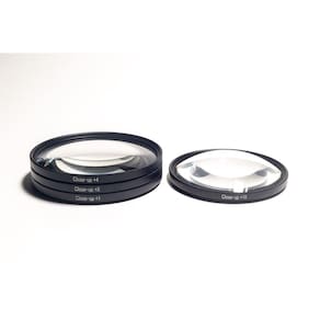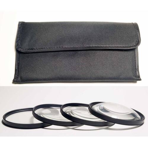 Kit de Filtros Close Up +1 +2 +4 +10 Conjunto de 04 lentes Close-up para fotografica Macro Reduz a distância mínima de foco da sua lente.KIT contém lentes +1, +2, +4 e +10 que podem ser usadas individualmente ou combinadas entre si para obter maior aproximação conforme a necessidade devido à curvatura, as lentes +4 e +10 não permitem que sejam rosqueadas outras lentes sobre elas. Mas estas podem ser usadas em conjunto com as +1 e +2 .Acompanha Bolsa Marca: F32