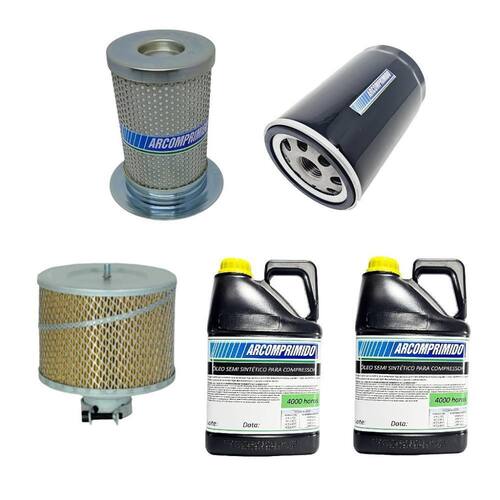 Kit de Filtros e 10L de Óleo Lubrificante Similares para Compressor Rotativo de Parafuso Techto Supreme SC 10hp. O kit contém: