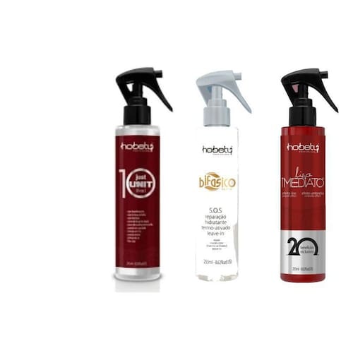 finalizador hobety liso imediato 255ml o fluido liso imediato da hobety foi desenvolvido especialmente para quem quer cabelos lisos, hidratados, com efeito duradouro e livre de química. Efeito umbrela resistente a respingos de água . Indicado para uso diário. Modo de usar: borrifar em todo o comprimento dos fios úmidos ou secos. Secar naturalmente, ou com o secador. Bifásico hobety desenvolvido para todos os tipos de cabelos, o sos bifásico da hobety vem conquistando o público feminino pela praticidade e benefícios exclusivos que oferece. Sua fórmula contém silicones nobres que garantem alta sedosidade, brilho e integridade aos fios, além de proteger contra agentes presentes na água do mar e piscina. Com uma fragrância incrível e benefícios que vão além da proteção térmica, você não pode ficar sem esse leave-in na sua necessaire e nem no seu toalete. Proteção contra sol, cloro e sal funciona como sos, reparação hidratante termo ativada use no dia a dia para desembaraçar tratar e dar aquele brilho utilizado nos fios secos